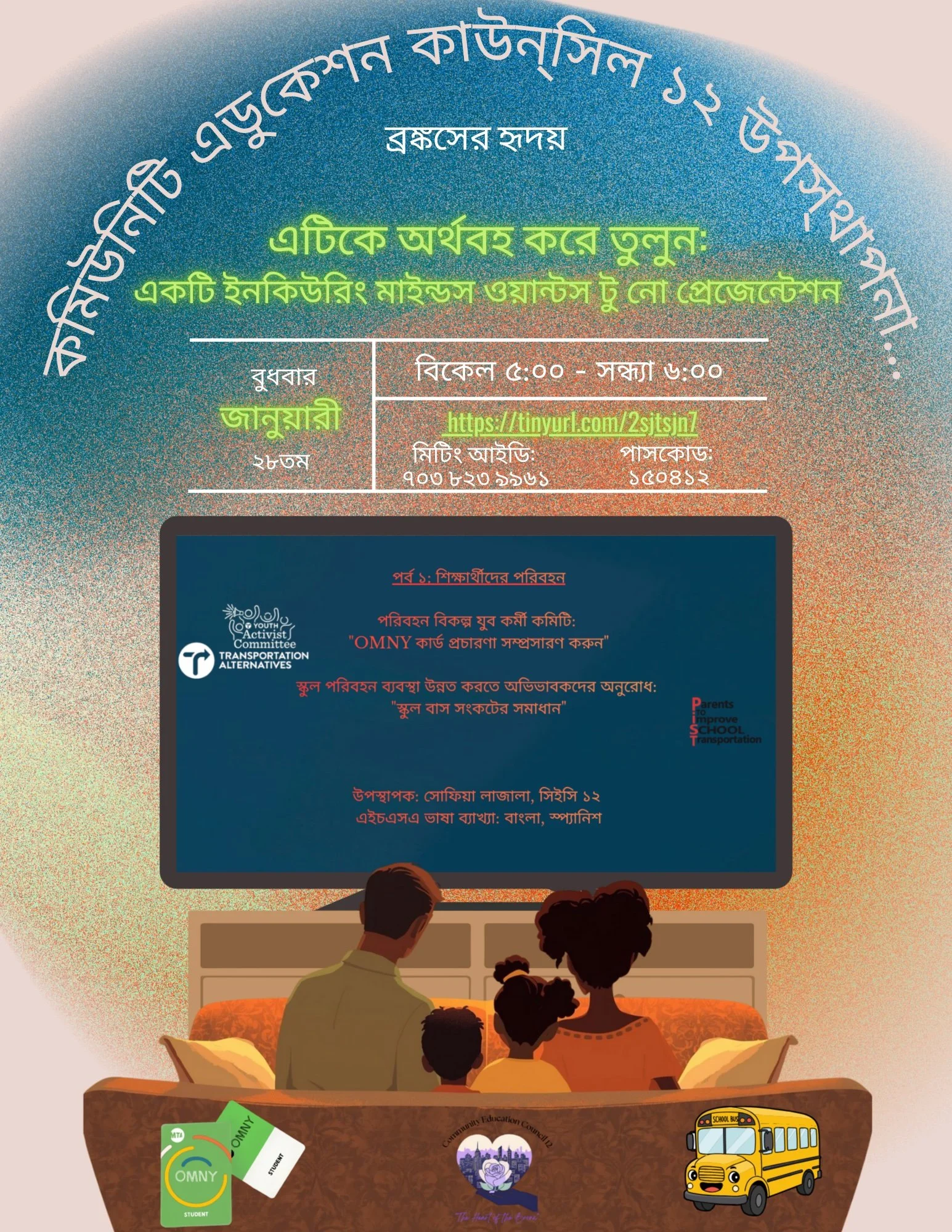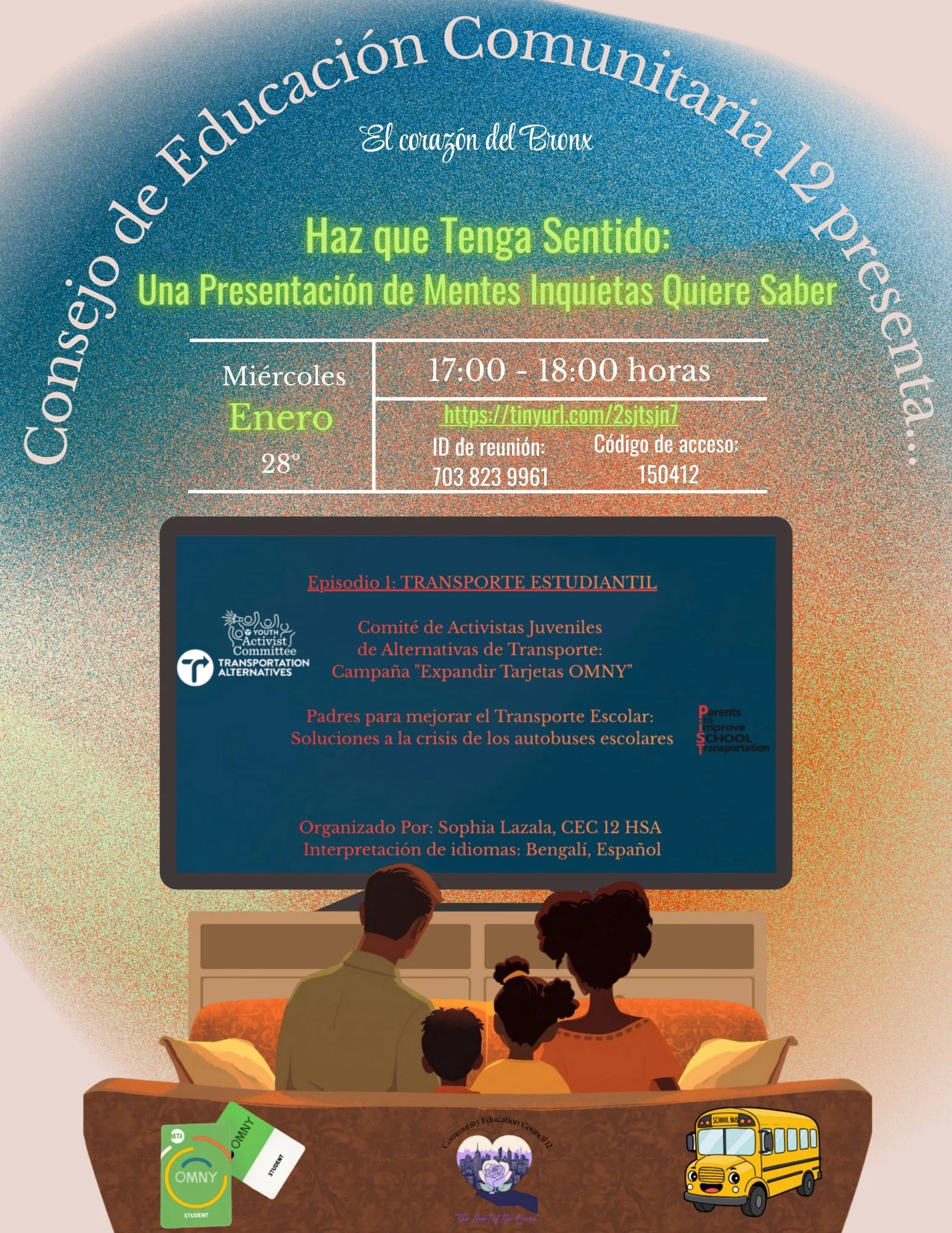 Wednesday, January 28 5:00 p.m. CEC 12 hosts PIST & the Expand Student OMNY campaign